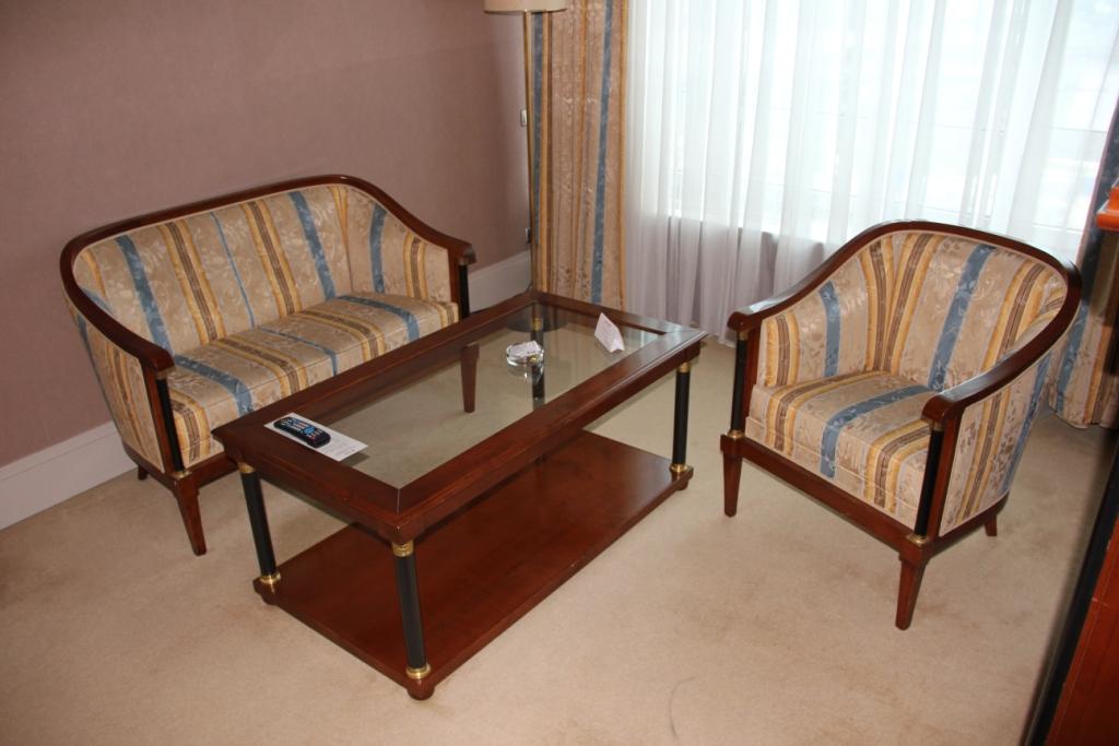 Элегантно обставленный итальянской мебелью номер с видом на парковую зону. В интерьере преобладают изысканные аристократичные акценты. Просторная комната вмещает большую двуспальную кровать, журнальный столик с изящными креслами, письменный стол.